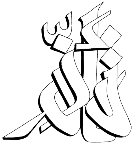 The font is a revival of the Eastern Kufic calligraphic style found in old Qoranic manuscripts.