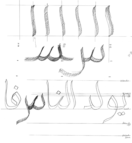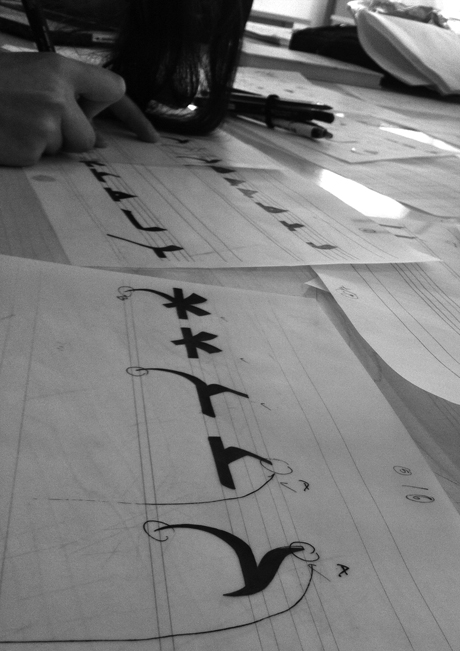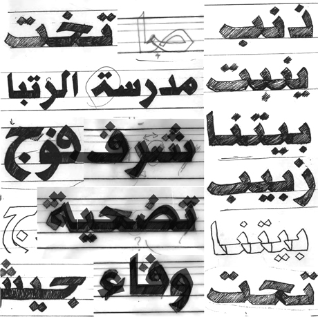This spring, the elective course “Introduction to Arabic Type Design” at AUB [American University of Beirut] was introduced. It is given part of the Graphic Design program at AUB. Third and fourth year students who were interested in Arabic type and wanted to develop their skills in understanding and drawing Arabic letters, enrolled in the course. The course was an ongoing collaboration between the students and I. I had to evaluate what they could and needed to learn as opposed to what was too advanced for them.