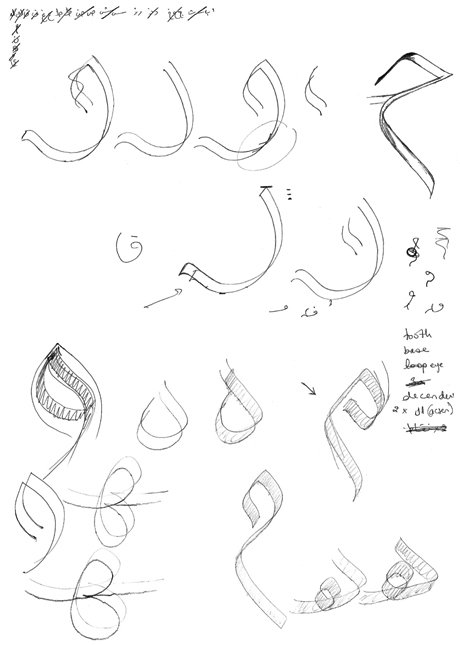 Introductory lettering exercises were given at the start of the course to familiarize the students with drawing Arabic letters and words. Students were asked to create their own Arabic urban lettering and later Arabic logotypes before they embarked on the creation of their first Arabic font.