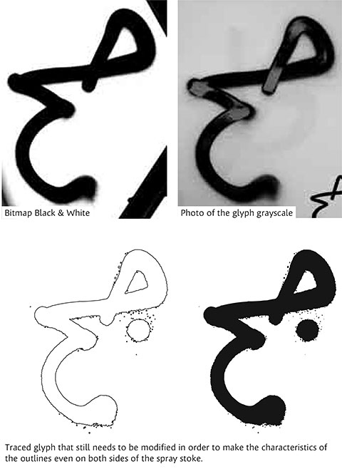 6. Working on the outlines in Adobe Illustrator CS2 in order to make the spray feel more even and equal in each glyph.