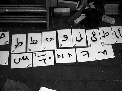 The design process of “Massira Type” started with the analysis of different handwritings and drawings, documenting the various alternative shapes each letter had and how each letter varies between a person and another. The analysis proceeded from the images I took of the petition in 2005, and it evolved into asking friends and colleagues to write the same text taken from the UN Humans Rights article.