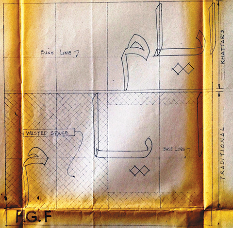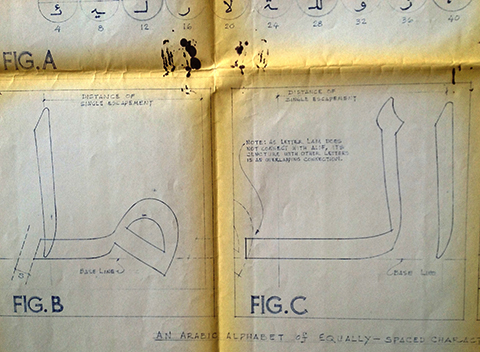 CKH: He immediately became determined to simplify the Arabic typewriter as well as Arabic type. He drew hundreds – if not thousands – of sketches of each letter formation. He didn’t stop until he reached the desired effect of legibility for each letterform.