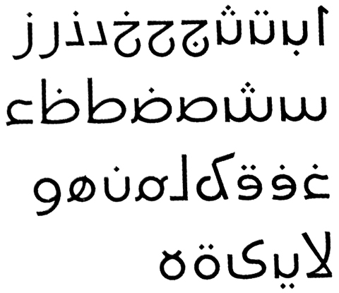 So he designed other fonts much closer in appearance to the traditional characters while at the same time greatly simplified. He felt that these later designs were closer to what readers were used to seeing yet without detecting anything different about them. In 1978, he took out a patent for his UA Kufic font. Here is an example: