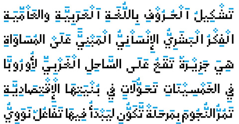 29LT Arapixis a 12 pixel high multilingual Latin-Arabic pixel font with incredible capabilities.