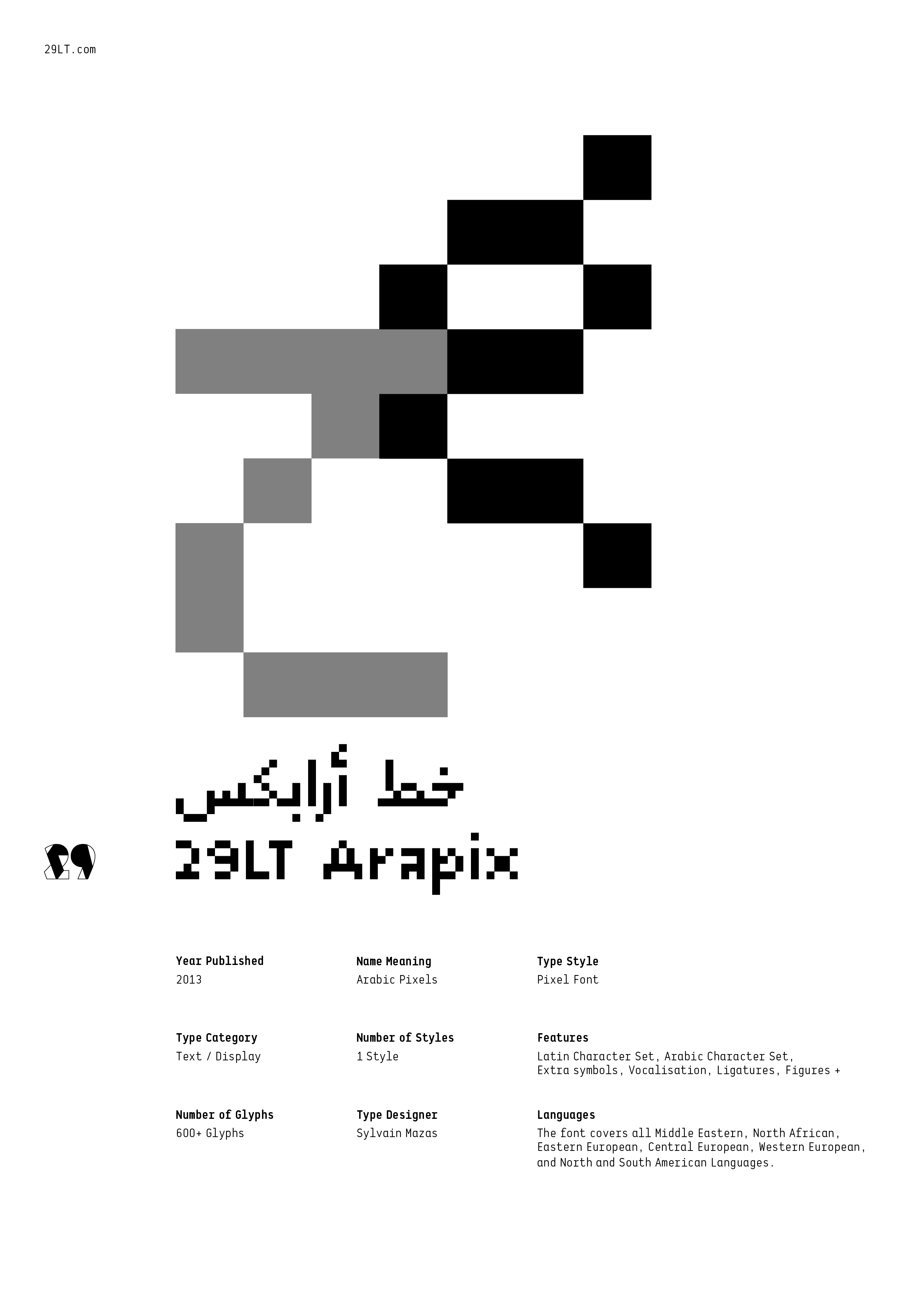 29LT_Arapix1 March 9, 2020 Return to: 29LT ARAPIX: A Multilingual Pixel FontFull resolution (2480 × 3508) Image navigation Previous Image Next Image