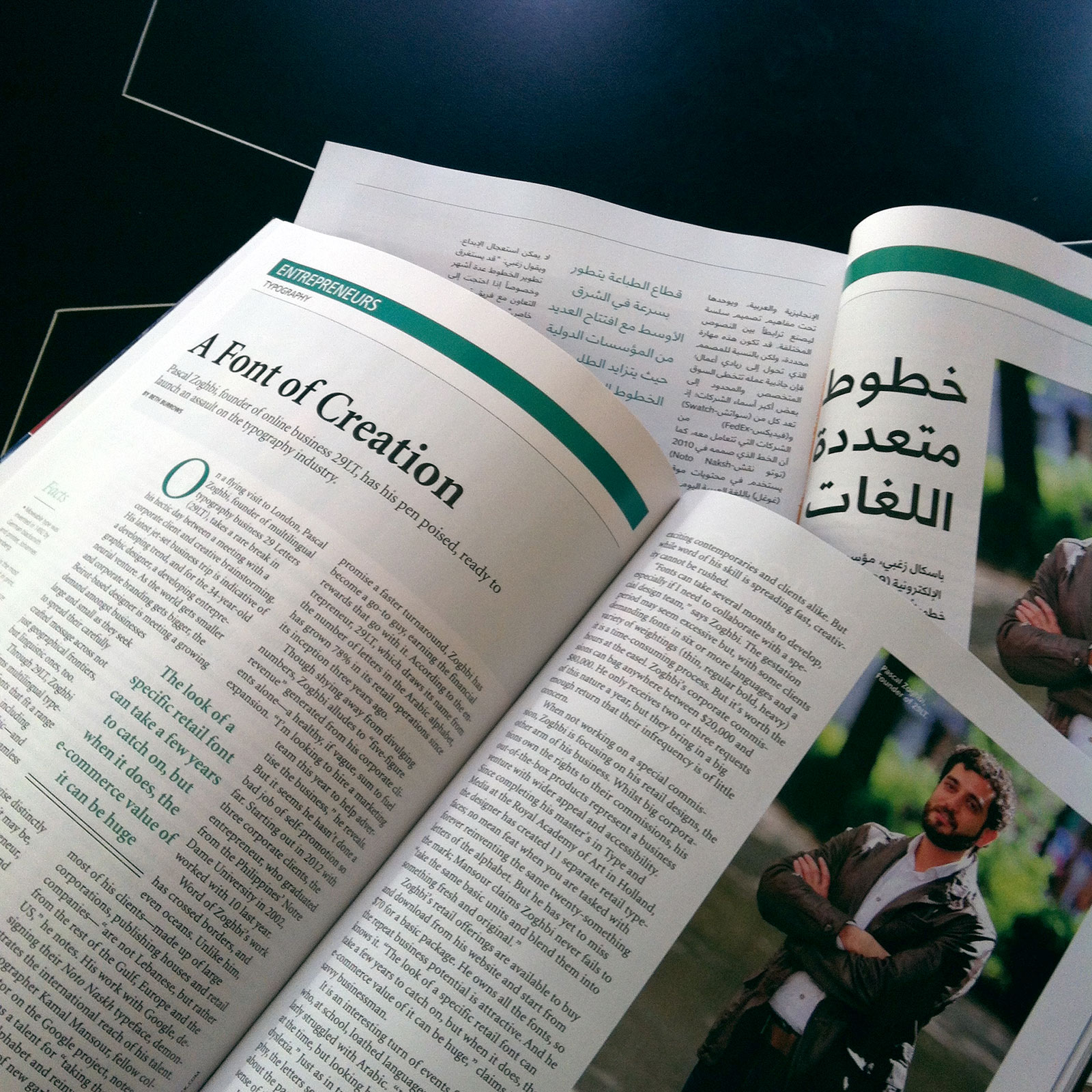 With hard-earned knowledge and expertise under his belt, Zoghbi’s sights are set on the future. And he has some ambitious business resolutions for 2015: “I want to open up my online platform to other Arabic typographers looking to publish their work.” His vision is to create a “retail channel” where designers can come together to grow and businesses can buy multilingual fonts. The move will further his mission to introduce new design perspectives and possibilities to the market, but it also makes sound business sense. Zoghbi will assist emerging designers with their work and, in return, take up to 50% of profits as commission.