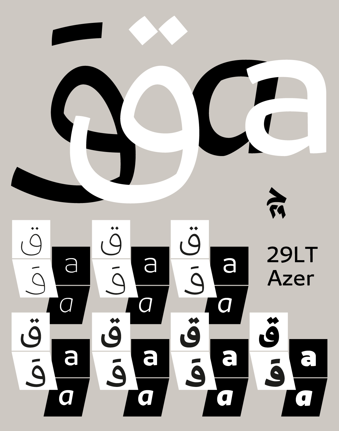 Visit 29LT Azer webpage on www.29LT.com website and download the type specimen for full information about the typeface.