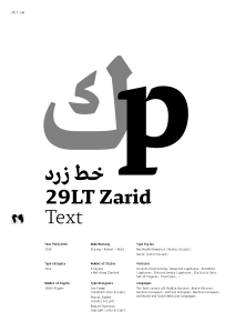 Visit 29LT Zarid Text webpage on www.29LT.com website and download the type specimen for full information about the typeface.