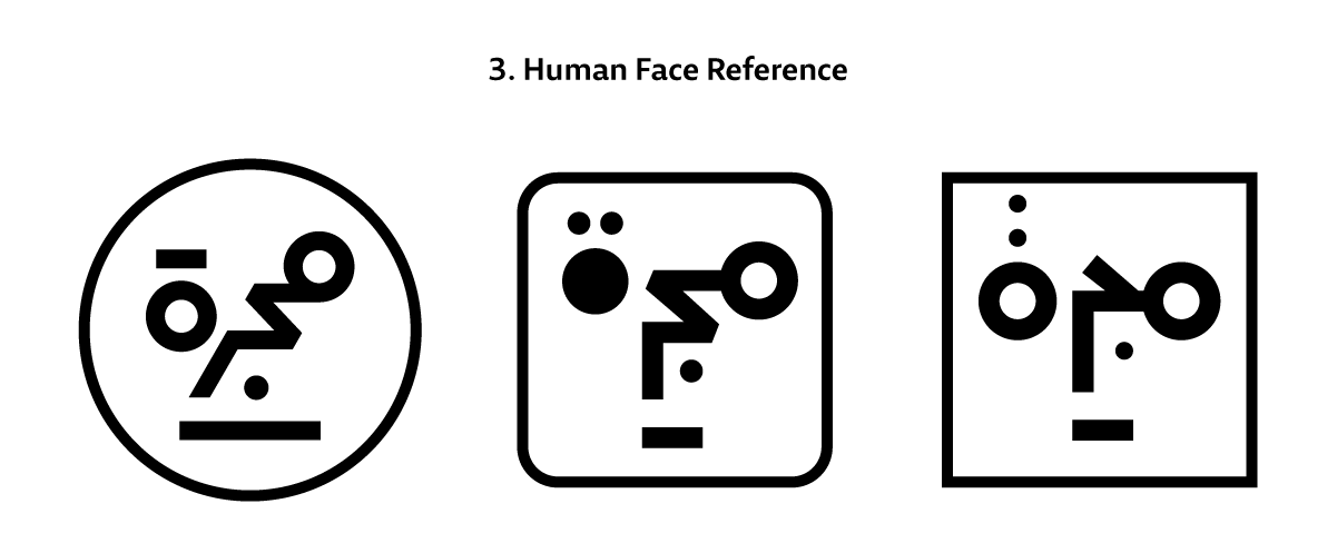 The Human Face Reference option appeared by chance while Zoghbi was working on the simplified letters options: he noticed that in specific placement, the Meem and the Ta’ Marbouta could be visualized as eyes in a face, with the Jeem and the Ra’ as the nose. Since Majarra is an educational and media platform enriching the human mind, exploring whether to have a logo look like a human face was interesting. This option was later dropped since the directors of Majarra did not want any visual icon to age, and Zoghbi thought that it might resemble internationally known logos like the MacOS logo.