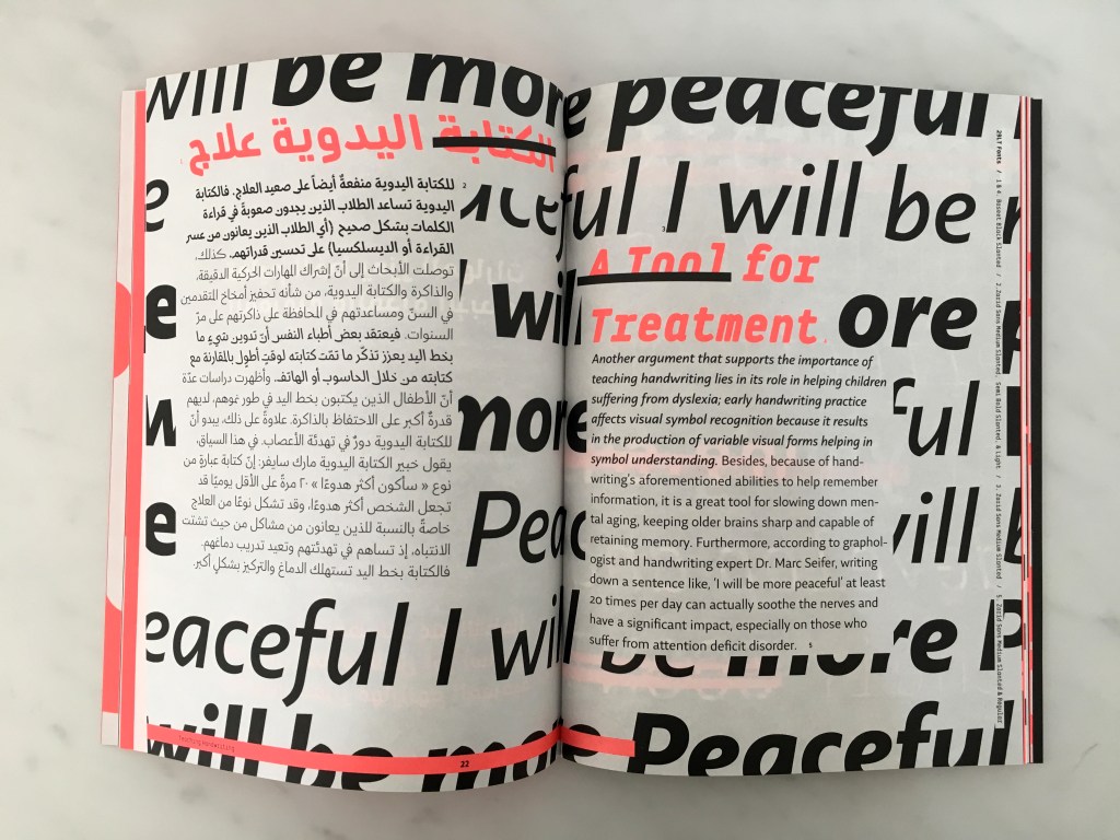 Multilingual content is created for each issue, covering a number of languages and scripts that 29LT fonts support. Each chapter is written in two or three languages simultaneously that are not a mere translation of the same content, but complementary information under the same subject. Expressly, it to shed light on topics of awareness that people can find deeper meaning in. It is important to showcase how a typeface can communicate imperative content.