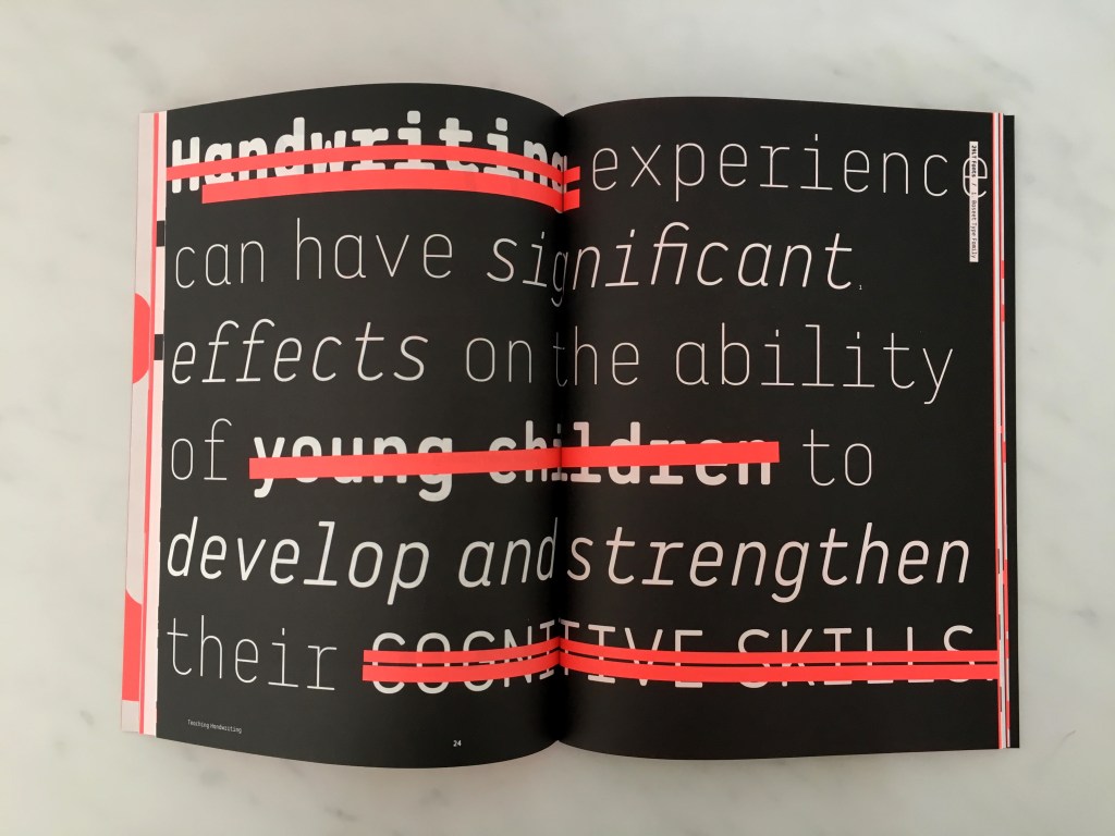 A new issue is printed annually or biannually depending on the number of new typefaces published. The latest font releases are mainly used in the layouts, while the earlier ones are listed in the index and occasionally used in the layouts. This design approach gives awareness of the new fonts, in addition to making the publication playful and active. Each publication is unique in its design, and the booklet series is aesthetically interchangeable from year to year.