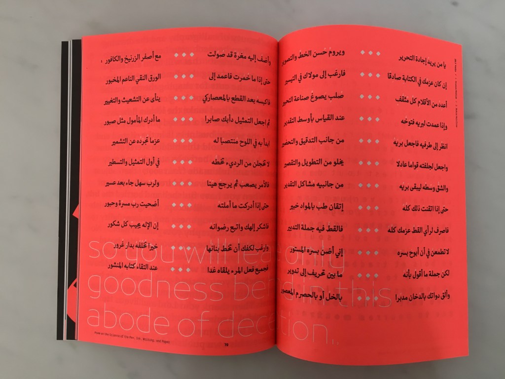 Extensive content was encountered from historical philosophers, poets, politicians, writers, and master calligraphers. Part of it was reserved for the printed publication and complemented with specifically written text, and the rest was used for the digital type specimens on the website.