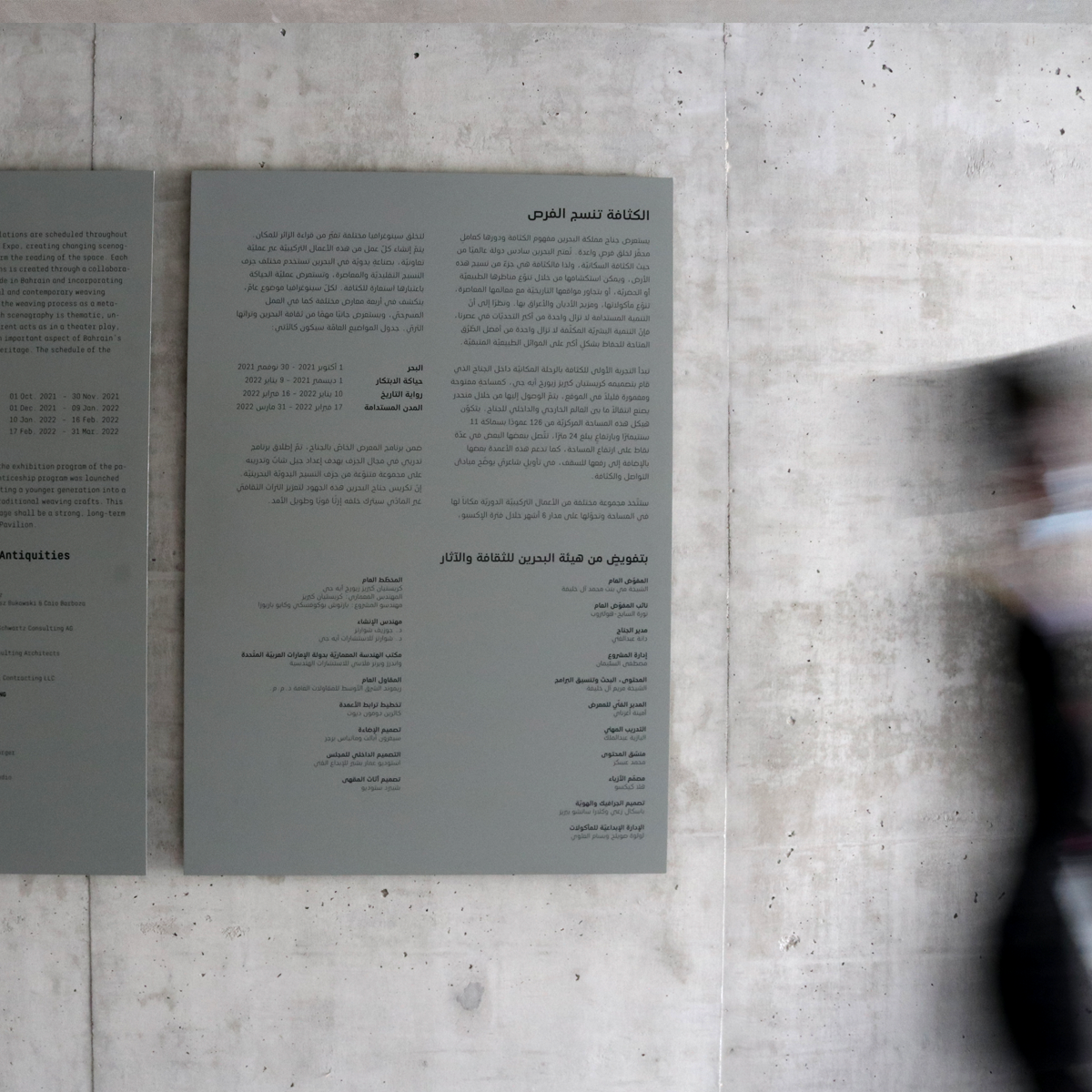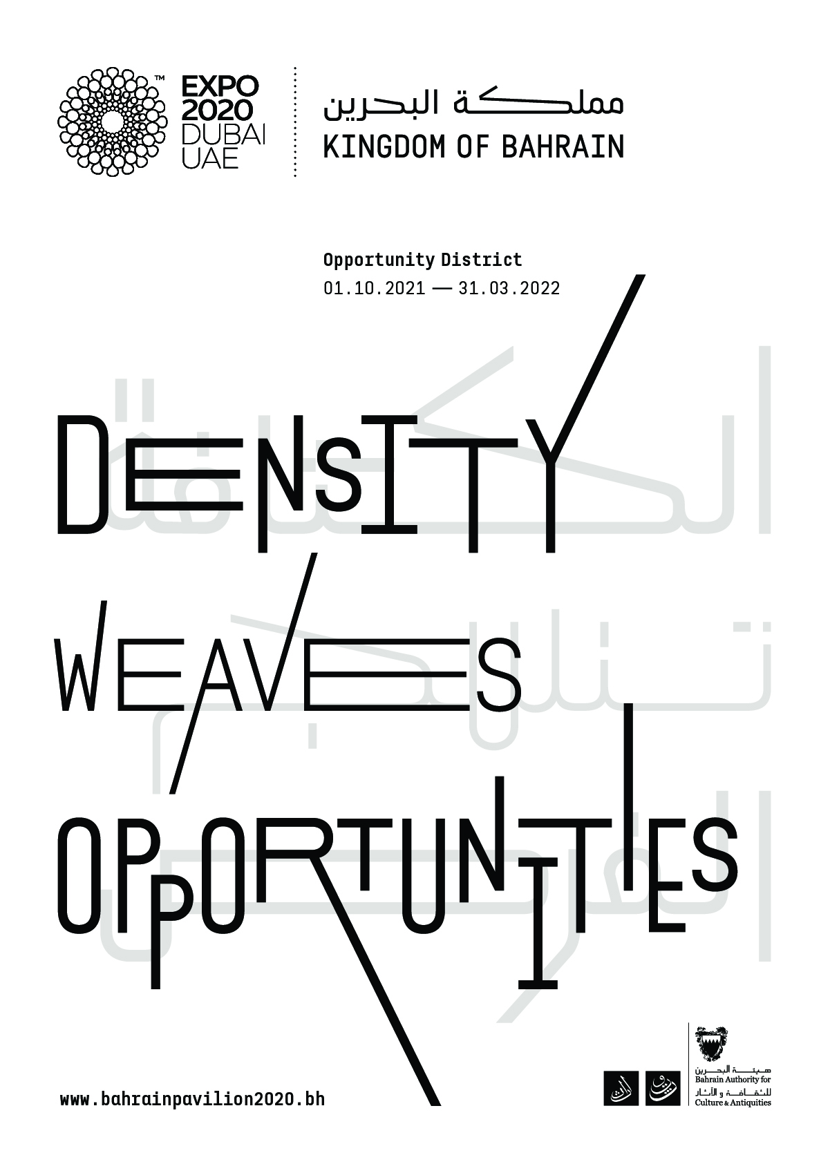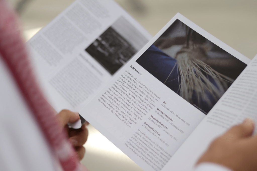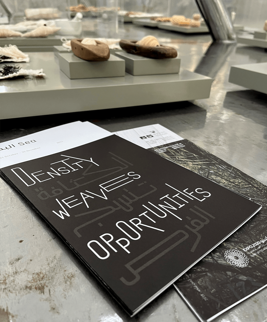 Under the title “Density Weaves Opportunities,” a special bilingual edition (1,000 copies) was carefully edited, designed, and produced for Expo Dubai. The book featured photographs of the pavilion and landscapes of Bahrain taken by Maxime Delvaux including essays by the Kingdom of Bahrain Pavilion commissioners and architect Christian Kerez in Arabic and English.