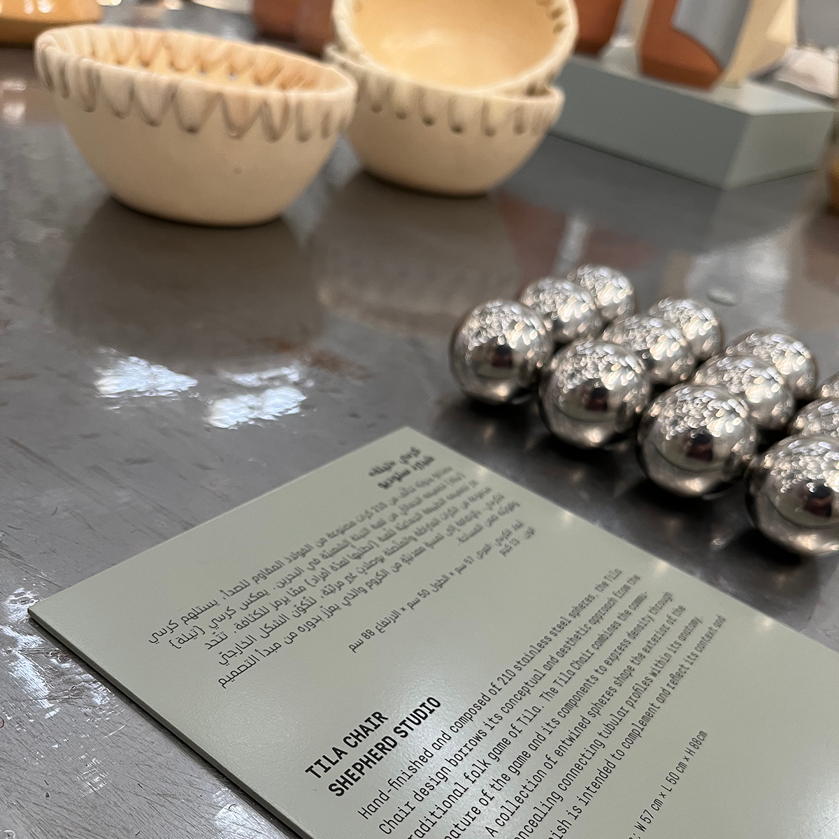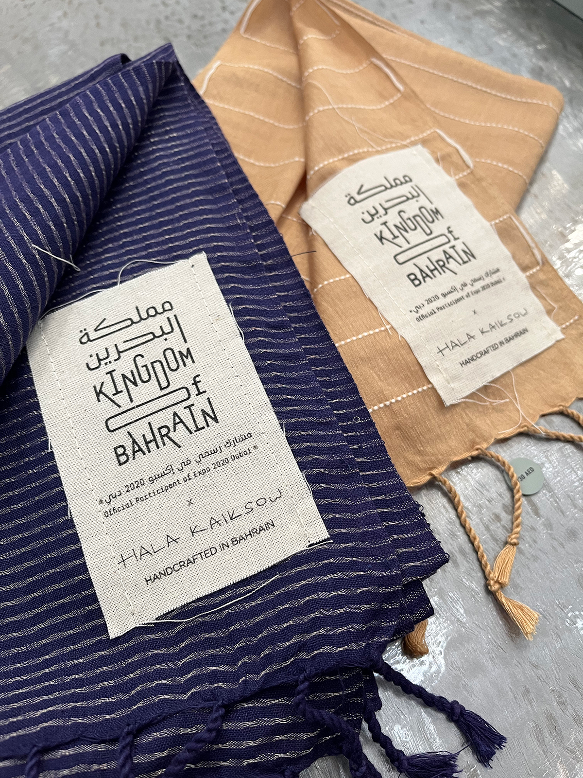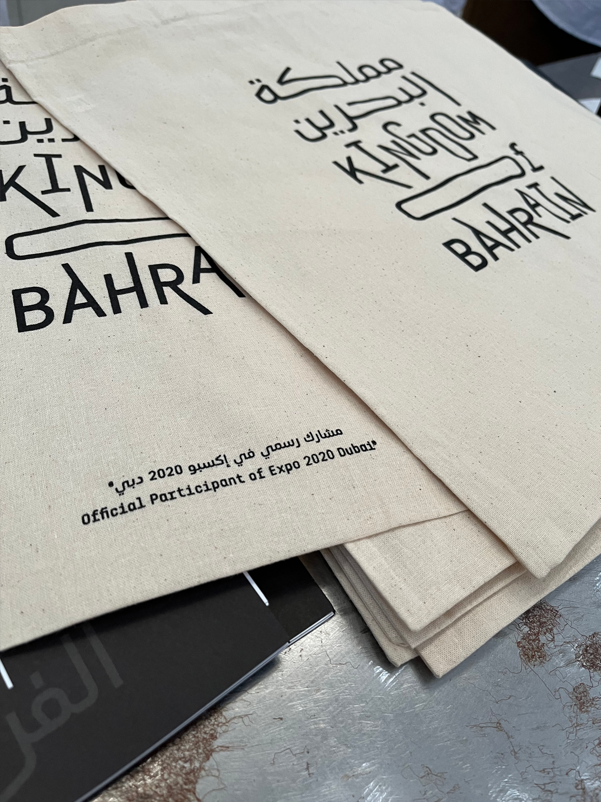 The flexible logotype was applied over a variety of promotional products sold in the pavilion store to promote local and unique Bahraini crafts, including tags and merchandising items and packaging.