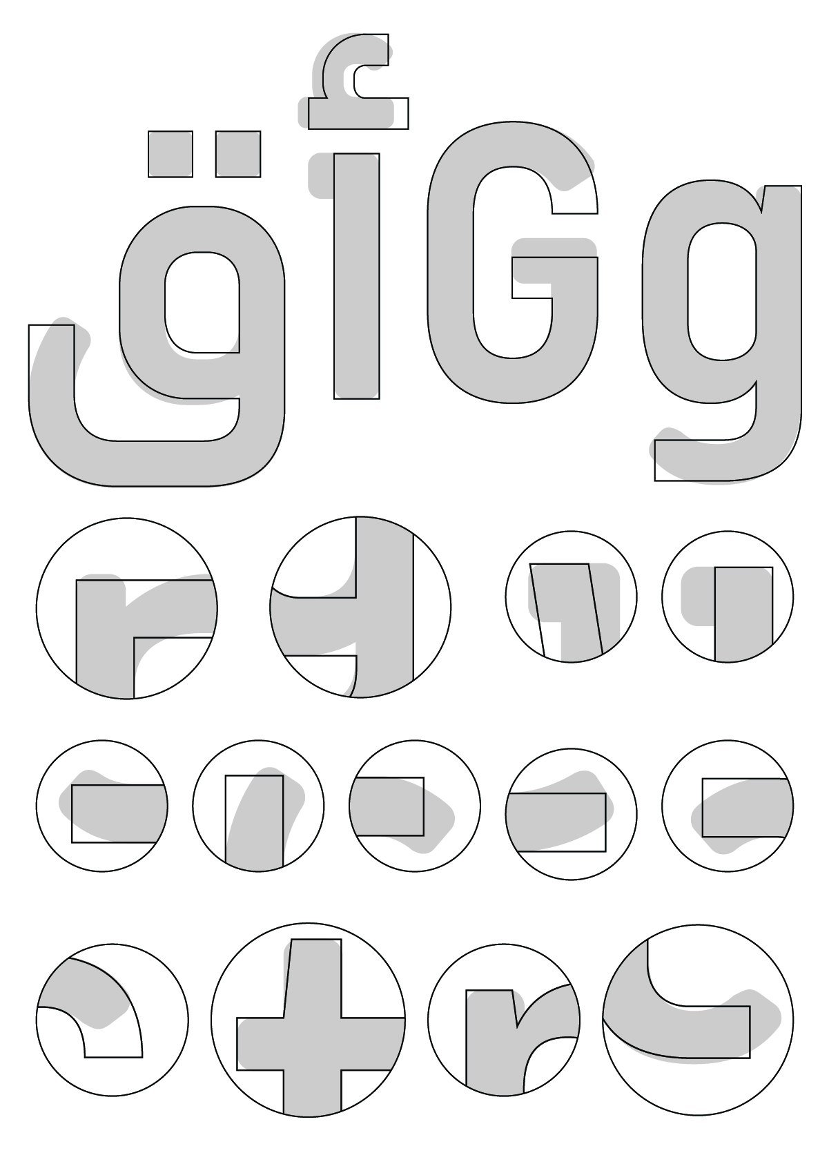 Zawi was customised to be the corporate and serious version of the more casual and friendly Baseet. The round terminals and finials of Baseet were replaced by straight cuts, and the fully rounded letter structures were straightened up to incorporate straight letterforms. In the Arabic character set, the closed and open counters became more horizontal or vertical, instead of rounder and curved. In the Latin, the apertures of the open counters were closed.