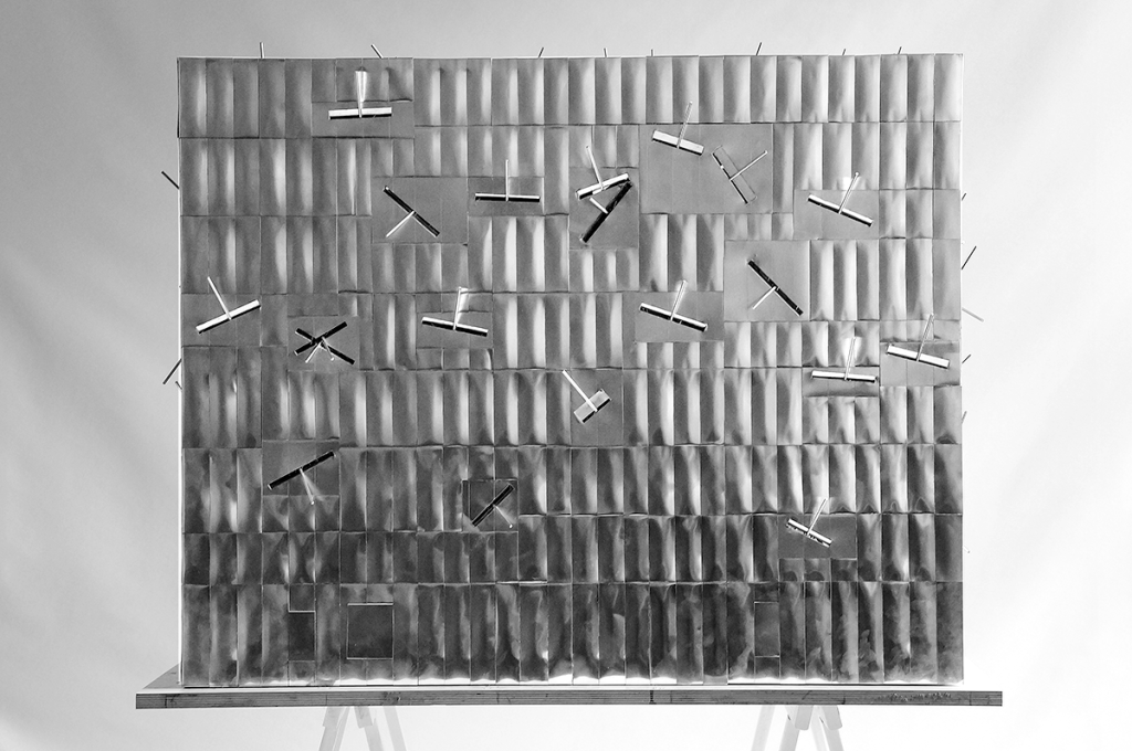 The pavilion was conceived as a physical and spatial experience of density and the future possibilities of building in an increasingly dense world. Designed by Christian Kerez Zürich AG, it was imagined as an open-plan space, submerged in the site and accessed through a ramp that created a transition between the outer and inner worlds of the pavilion. The structure of this central space was made of 126 columns joining each other at several points throughout the height of the space. The columns supported one another and the roof, providing a poetic structure demonstrating connection and density, while exploring the three-dimensional possibilities inspired by traditional Bahraini architecture’s geometric gypsum ornaments.